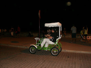 Às dez da noite, ainda se viam pessoas na praia, dentro de água! Pintores nas ruas fazem retratos e caricaturas, mulheres fazem tranças e tatuagens, com henna...há aqueles que se disfarçam de estátuas para ganhar umas moedas...os que passam com bebidas para a praia...há de tudo! Uns alugam bicicletas e percorrem as ruas, outros passeiam nos coches de cavalos...muita gente a comer petiscos nas esplanadas e música no ar... As meninas estavam fascinadas! Experimentámos fazer o percurso no comboio, ainda de dia e repetimos à noite. Totalmente diferente! Vale a pena ver a diferença.
